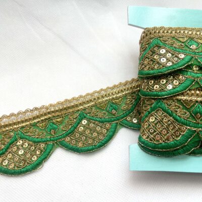 Gold with Gold Sequin Embroidered Decorative Lace Embellishment Trimming