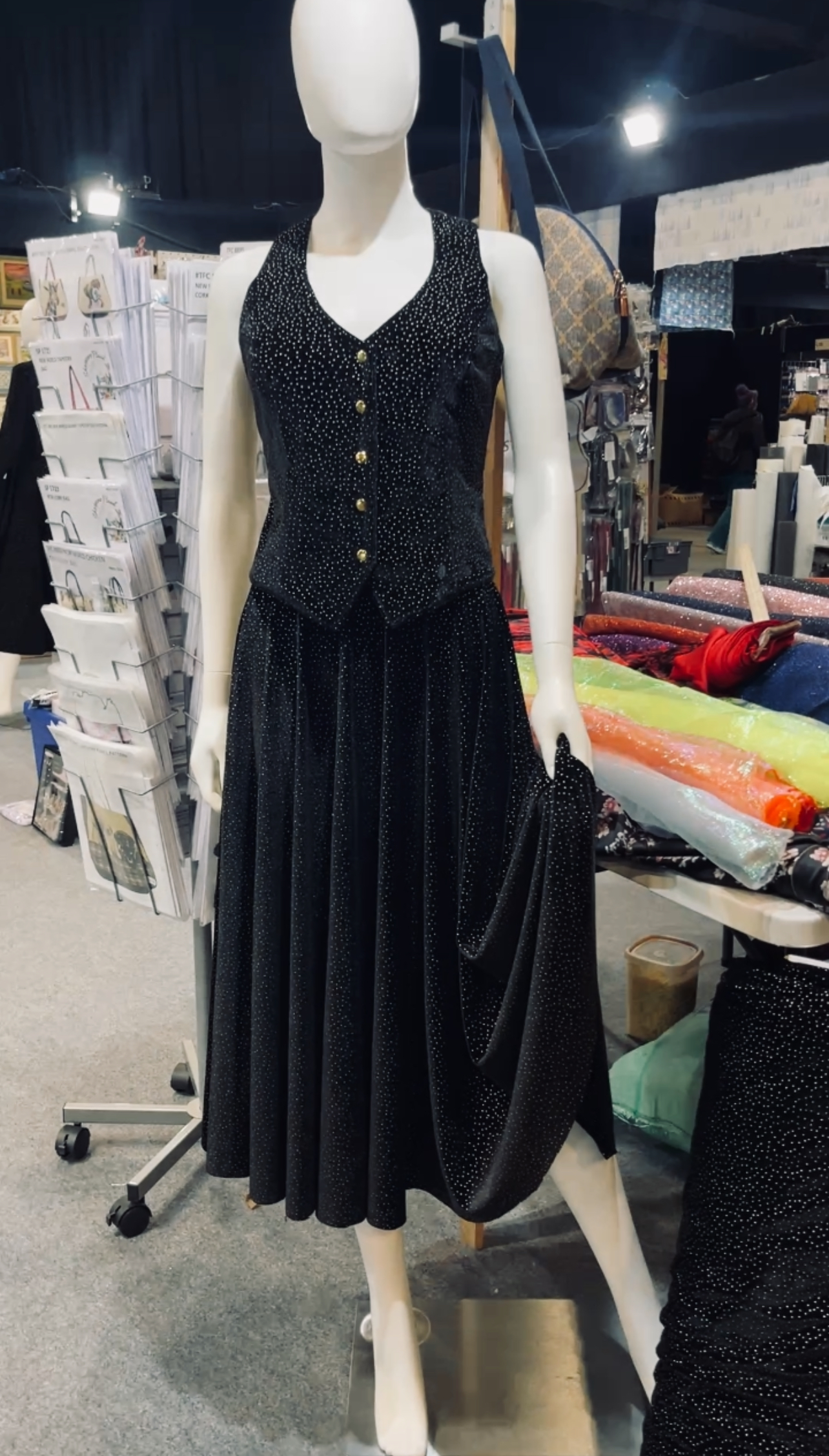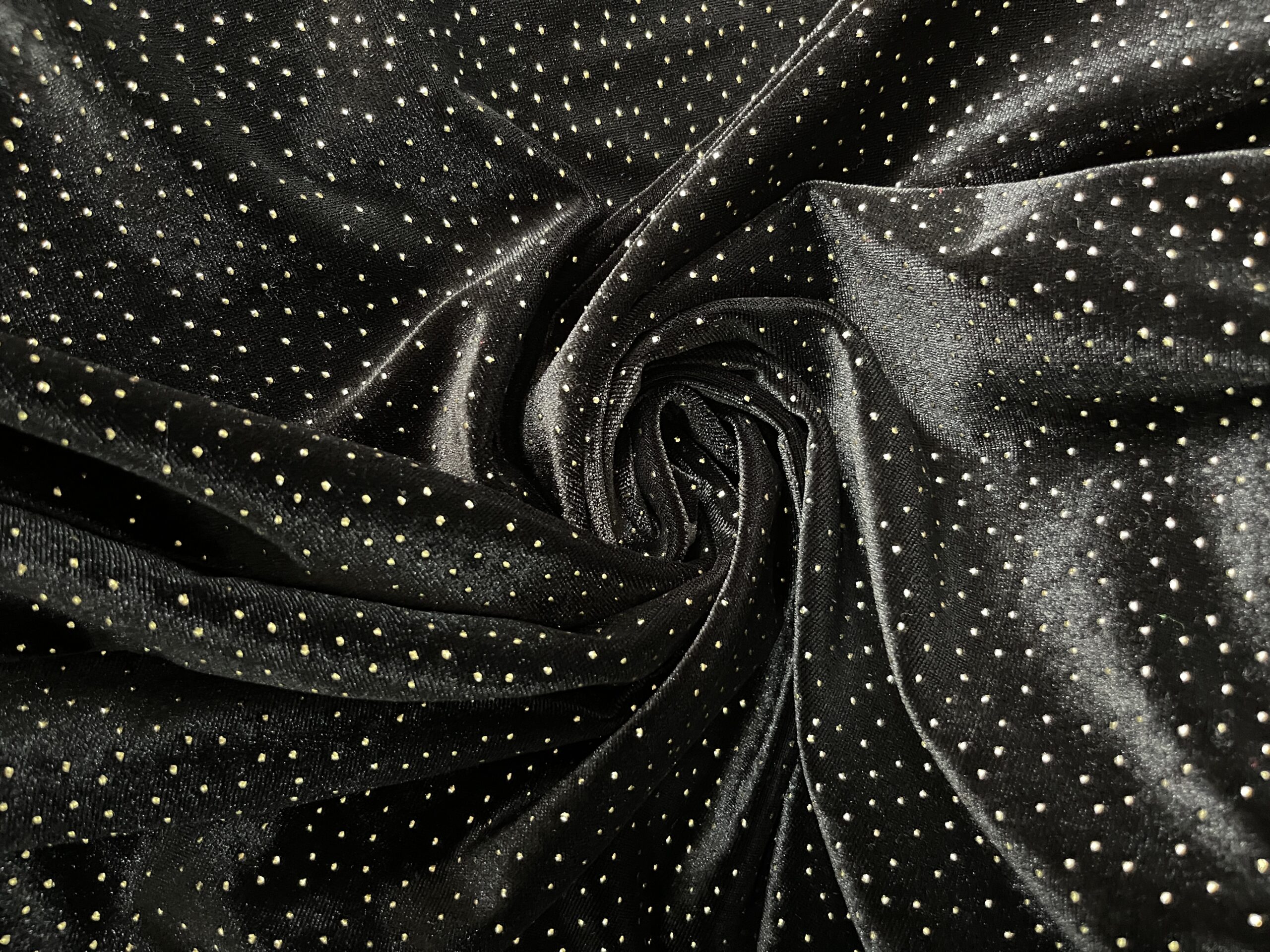 Luxurious Italian Velvet Black Stretch Velour Fabric with Gold Metallic Studs Fabric
