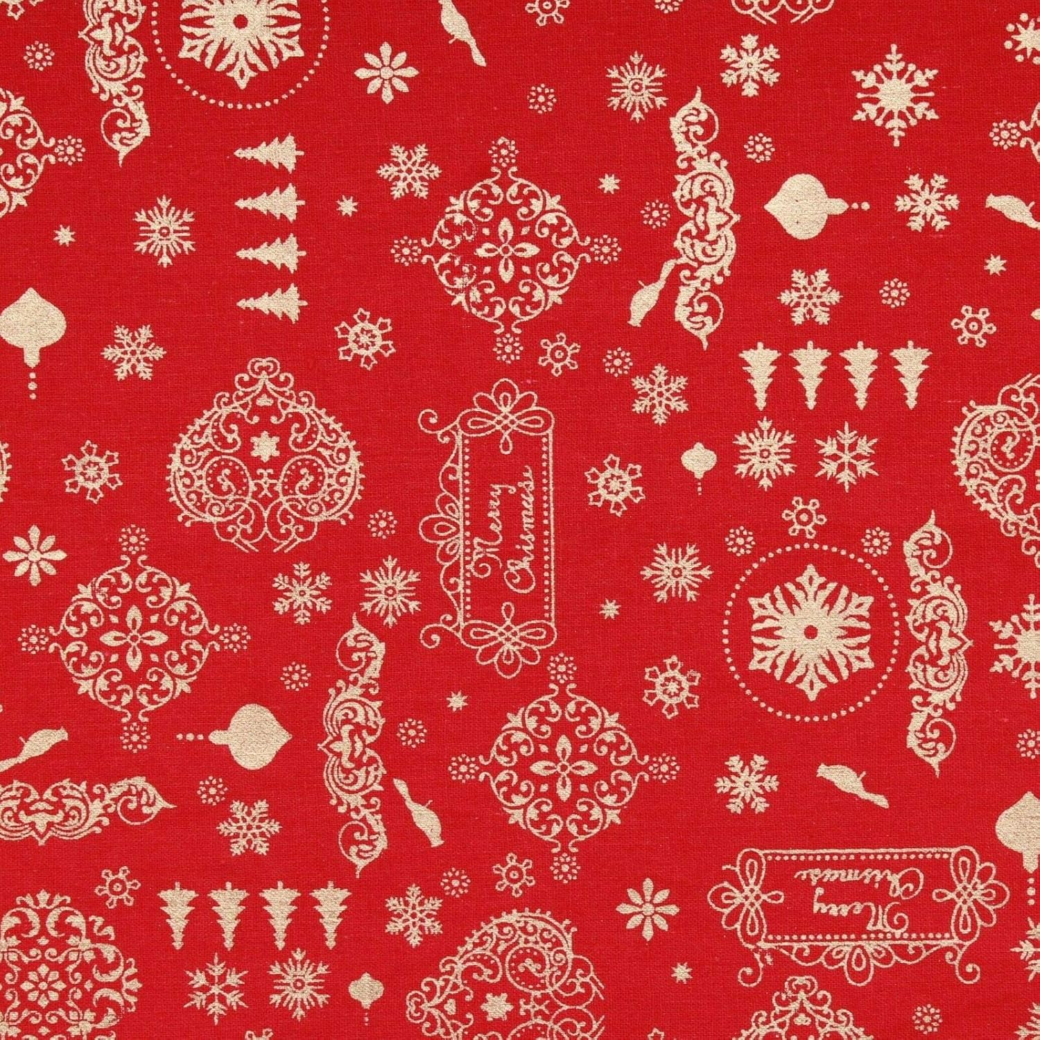 Red Festive Galore Metallic Foil Vintage Christmas Cotton